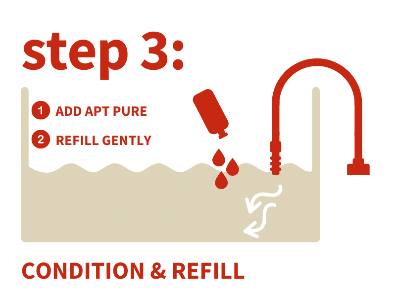 2HR Aquarist APT Pure The 360o water conditioner. Comprehensive and super-concentrated formula removes chlorine & chloramines and detoxifies heavy metals, ammonia, nitrites and nitrates. Contains soothing Aloe Vera extract. Dose APT Pure 1ml per 60L Dose up to 5X recommended dosage as an emergency tool to detoxify Ammonia.