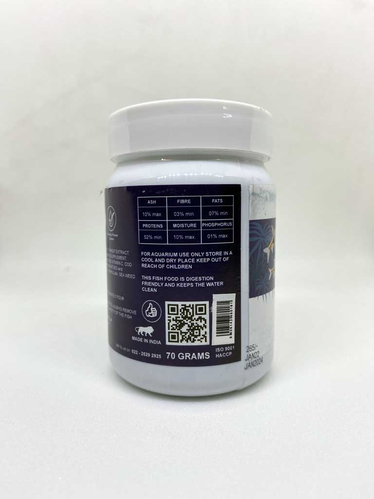 Fish Meal, Anchovies, Shrimp Meal, Yeast Extract, Wheat Extract, Soy Protein Isolate, Fish Oil, Whole Eggs, Vitamin E Supplement, Vitamin B12 Complex, Vitamin a, Coated and Stabilised Vitamin C, Cod Liver Oil, Vegetable Oil, Permitted Grade a Preservatives and Antioxidants, Asthaxanthin, Paprika, Lutein 10%, Spirulina, Sea Weed Extract, Garlic Extract, Moringa