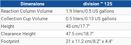 Aquavitro division™ 125 skimmers are designed with the aquarist in mind and offer a host of unique features including a polycarbonate collection cup with built in handle, height based drain regulation, an innovative silencer, complete micro bubble removal, and air and water flow versatility.