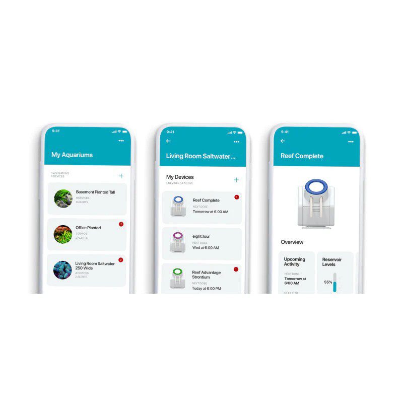With the sentia® app, take control of the sentia® dose modular doser. Manage multiple aquariums and devices. View statistics like reservoir levels, upcoming doses and scheduled water tests at a glance. Receive alerts and reminders, and review dosing logs to keep you in control of your dosing regimen. Automatically create suggested dosing schedules or create your own with complete versatility of days of the week, time of day, doses per day, total volume, and volume per dose.