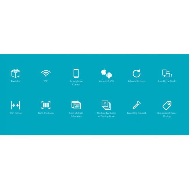 Maybe you only need one doser. Maybe you need three…or 15. Connect unlimited Secondary Units to the Primary Unit and control them all from the same app on your smartphone. Remove the side panels and simply slide what you need in place. All powered by one Primary Unit.