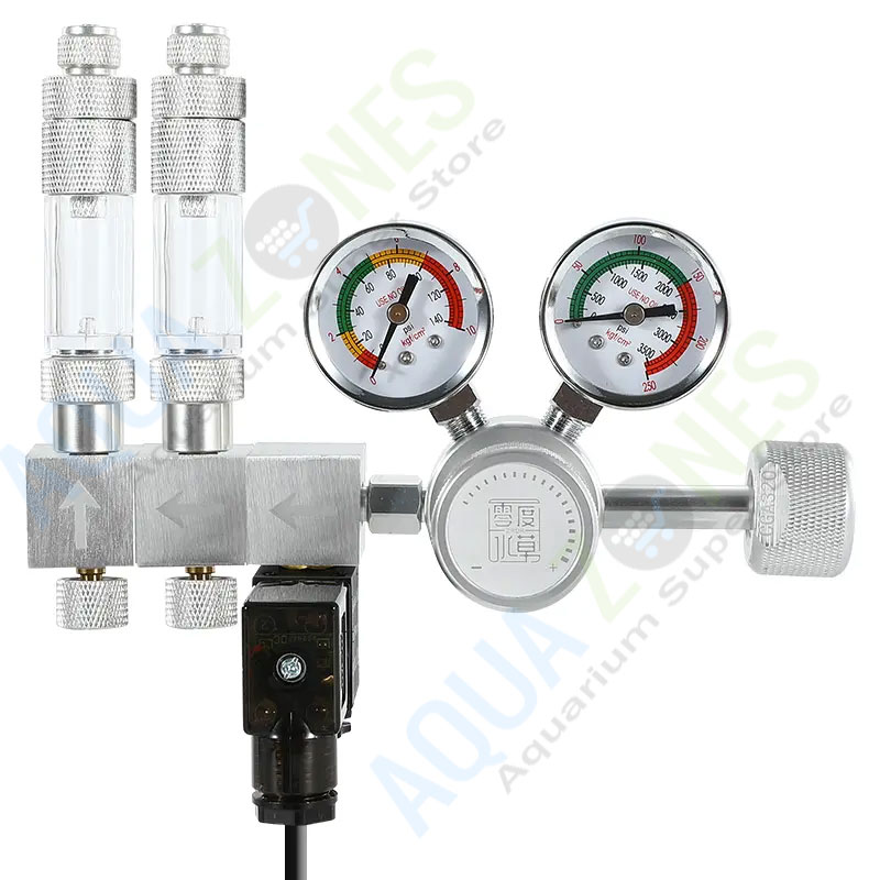 1 No of  ZRDR Dual Gauge Dual Stage Co2 Pro Series Regulator with DC Solenoid + 2 Nos Bubble Counter + Built in Check Valve Thread Size is G5/8
