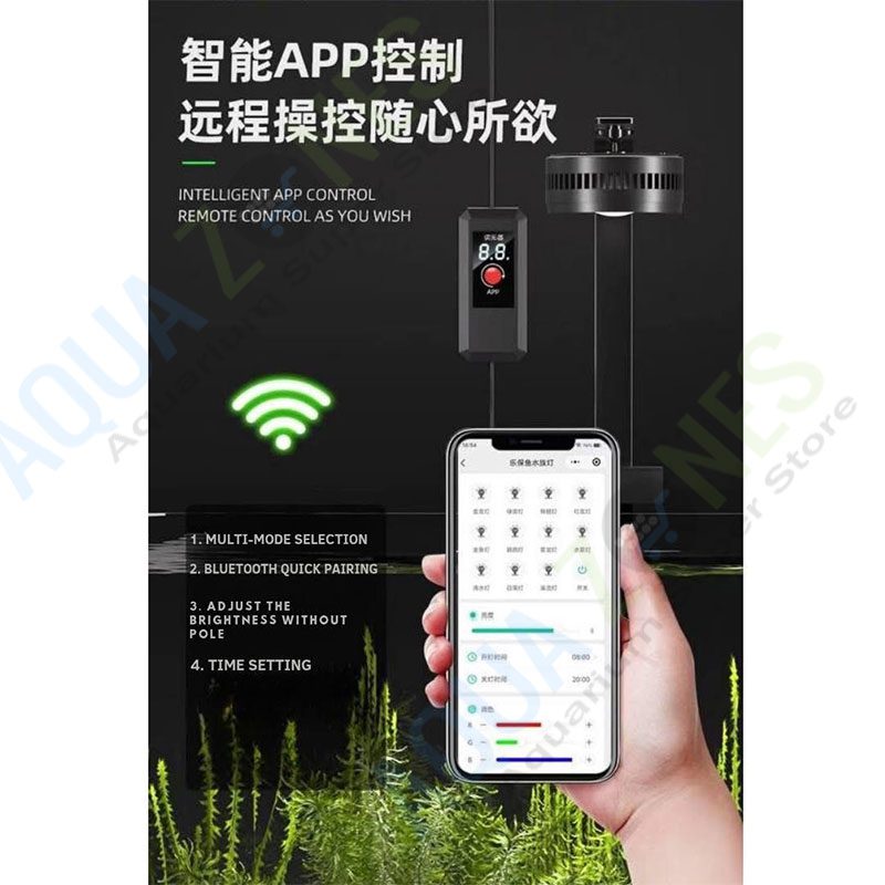 With precise focus lighting and dimmable control, this light ensures your aquascape gets the right intensity throughout the day. Easily manage brightness and schedules through the dedicated mobile app, giving you complete control at your fingertips.