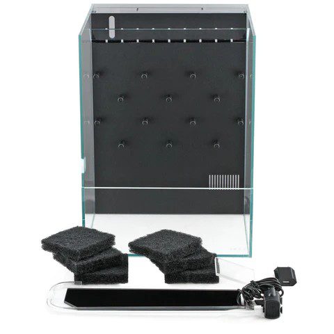 The wall in the back can be planted with mosses and epiphytes, which will be kept wet by the waterfall. The large filter box makes great filtering possible combined with a lot of space for important micro-organisms. Due to the small hole in the side of the tank, a CO2 system can be included without disturbing hoses being in the way of your sight.