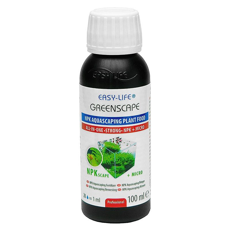 Easy Life GreenScape Plant Fertilizer is a high NPK (nitrate, phosphate, potassium) fertilizer with trace elements. Available in various packaging sizes, GreenScape is a true aquascaper’s fertilizer, ideal for aquariums with many plants and few or no fish.