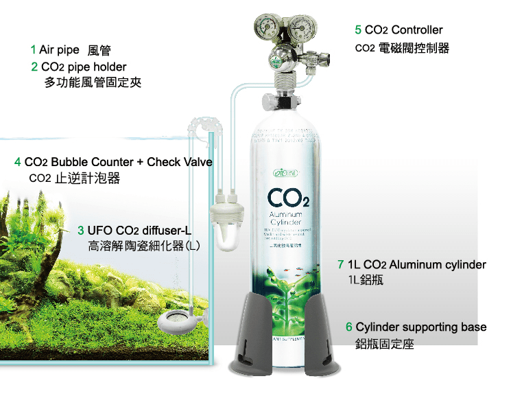 CO2 pipe can be fastened to the diffuser in a vertical position that it prevents the pipe to be bended.