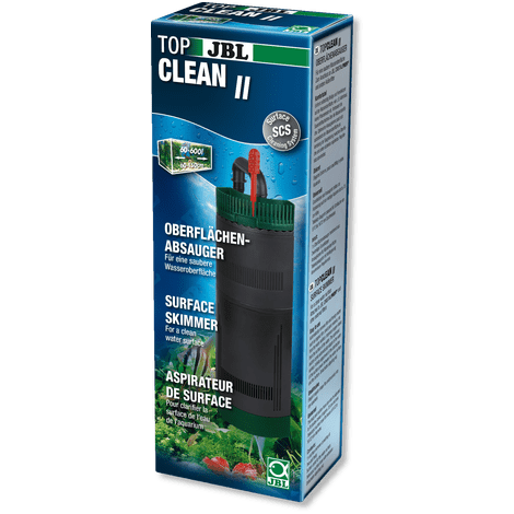 The JBL Surface skimmer effectively removes scum formations or prevents them from forming. With its deep water intake the skimmer can be used to replace the conventional suction pipe. The skimmer comb automatically adapts to a changing water surface (as when water evaporates).