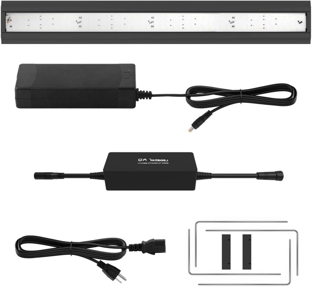 - LEDSTAR AQ-J90 II fits aquarium rimless tanks from 35.4″ to 43.3″ in length with adjustable mounting brackets. Hang kits available for additional purchase.