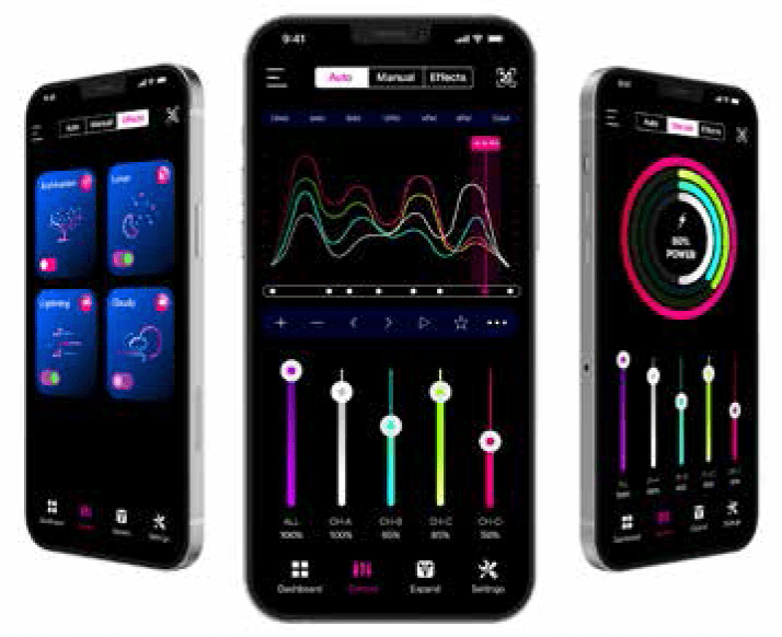 Dashboard: On the Dashboard, you can quickly to go the preset to set the program. And switch ON/OFF for the lighting intensity, effects, expands easily, which to help you rule all the status of your devices as system.