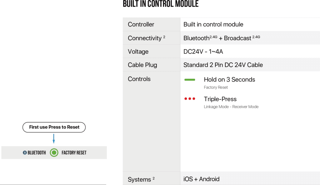 Control: Bluetooth App / Voltage: AC110-230V