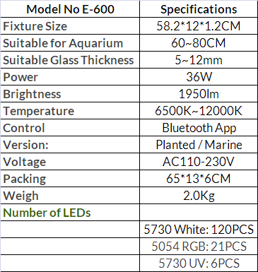 Number of Planted LEDs: 5730 White: 120PCS, 5054 RGB: 21PCS, 5730 UV: 6PCS