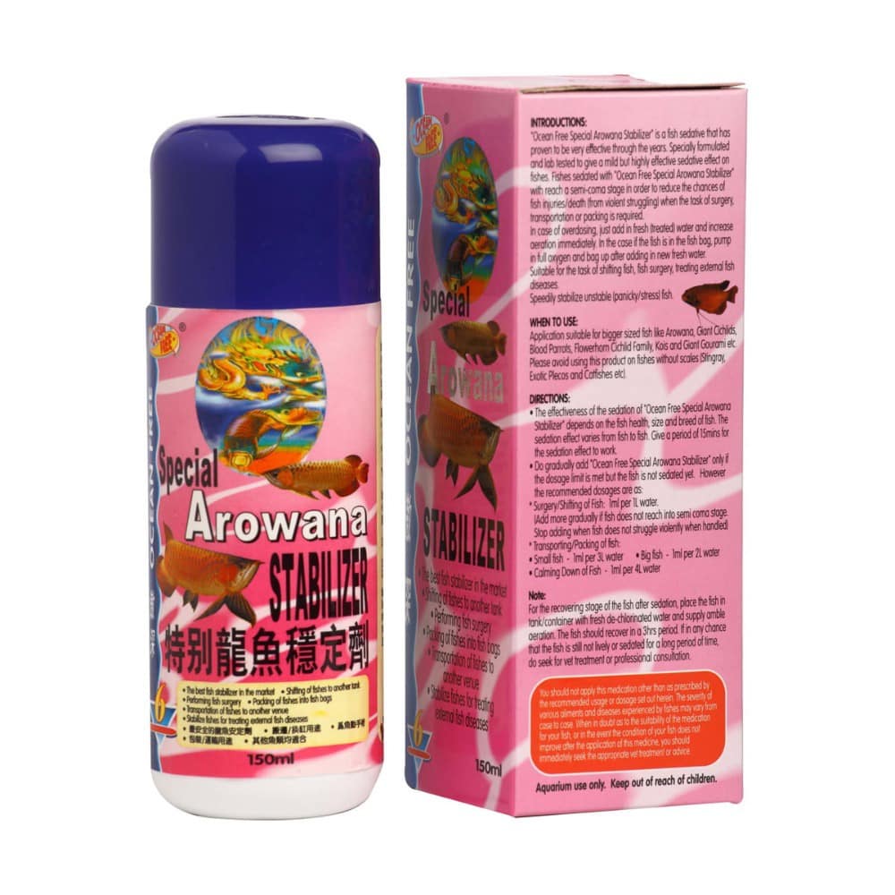 Can be used for Arowana surgery, for external treatments, packaging & transportation. In case of overdosing, just add in fresh water and increase aeration immediately.