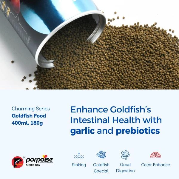 • Balanced Nutrition: Crafted with a blend of high-quality proteins, essential vitamins, and minerals, Porpoise Goldfish Food provides a complete and balanced diet for goldfish of all sizes and varieties. It is packed with garlic and probiotics to keep their intestine happy and healthy, aslso rich in spirulina and high protein.