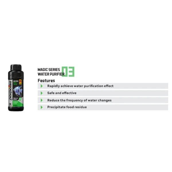 Achieve pristine water quality in your aquarium with Porpoise Water Purifier, a powerful solution designed to eliminate impurities and enhance the overall health of your aquatic environment. Our advanced formula effectively removes harmful substances, ensuring a safe and clean habitat for your fish and aquatic life.