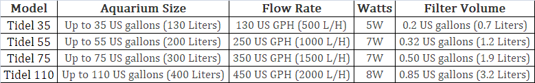 Fully adjustable flow regulation adjusts performance to a specific aquarium volume, type, or provide an environment for fish which prefer more or less water movement or oxygenation. Adjust using the dial on the front, for a powerful full flow rate of 450 gallons per hour on the Tidal 110 down to a gentle 90 gallons per hour on the same filter.