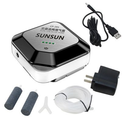 The SunSun CP-201 is a newly designed air pump with a built-in battery. With the 18650mAh high performance lithium battery, the standby time is 40 hours. 20 hours for continuous usage. Water-proof touch sensor button and a water-proof DC socket.