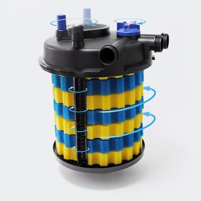 The pressure pond filter ensures a stable, biological balance and improves the water quality. In combination with the right pump (not included, note the maximum volume capacity of the pond pump) guarantees the clear water and creates a healthy climate for the pond inhabitants.
