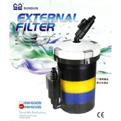 SunSun HW 603B External Filter – multi-stage canister filter is ideal for fish tanks upto 75Ltr and comes with filter pads, hoses and all the parts you need to get started.