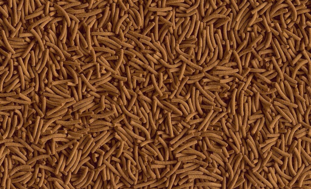 The sticks float on the surface of the water and suit the fish’s natural eating habits, due to their worm-like size and shape.