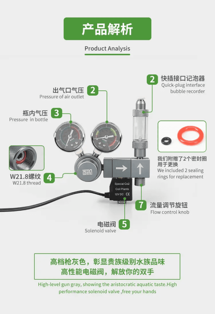 - Wyin Aqua CO₂ regulator with one output manifold