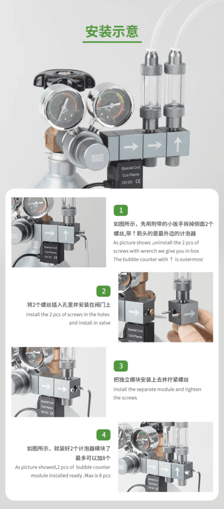 The Wyin Aqua Dual Gauge Smart CO₂ Modular Regulator is a high-quality, modular regulator designed to distribute pressurised CO₂ to multiple planted aquariums from a single cylinder. Built with precision and flexibility in mind, this system is made from durable aluminium and supports the addition of extra manifold blocks (sold separately), making it perfect for hobbyists or stores running more than one tank.